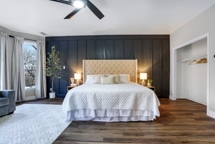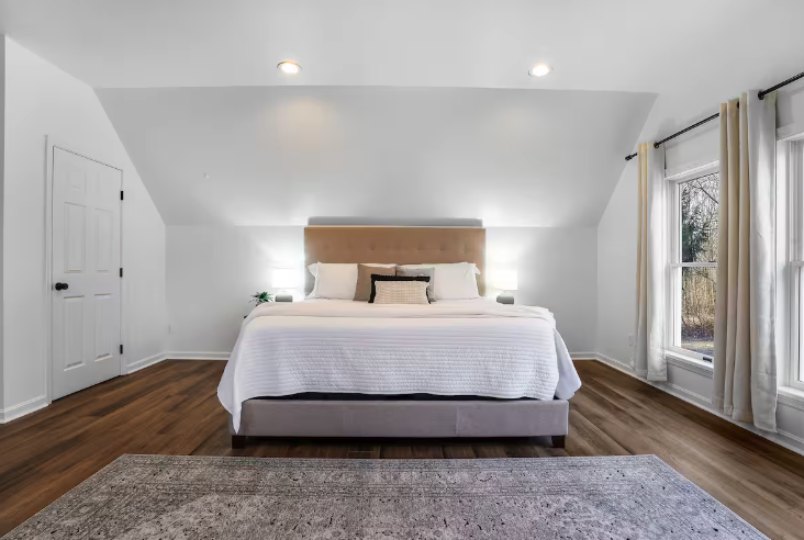 This private bedroom offers a king size bed, couch, and private bathroom on the 3rd floor.